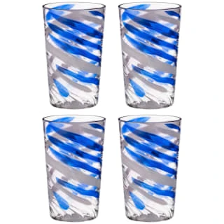 A pack of four glamorous picnic tumblers, featuring blue and grey swirls around the surface of the glass for the perfect toast.